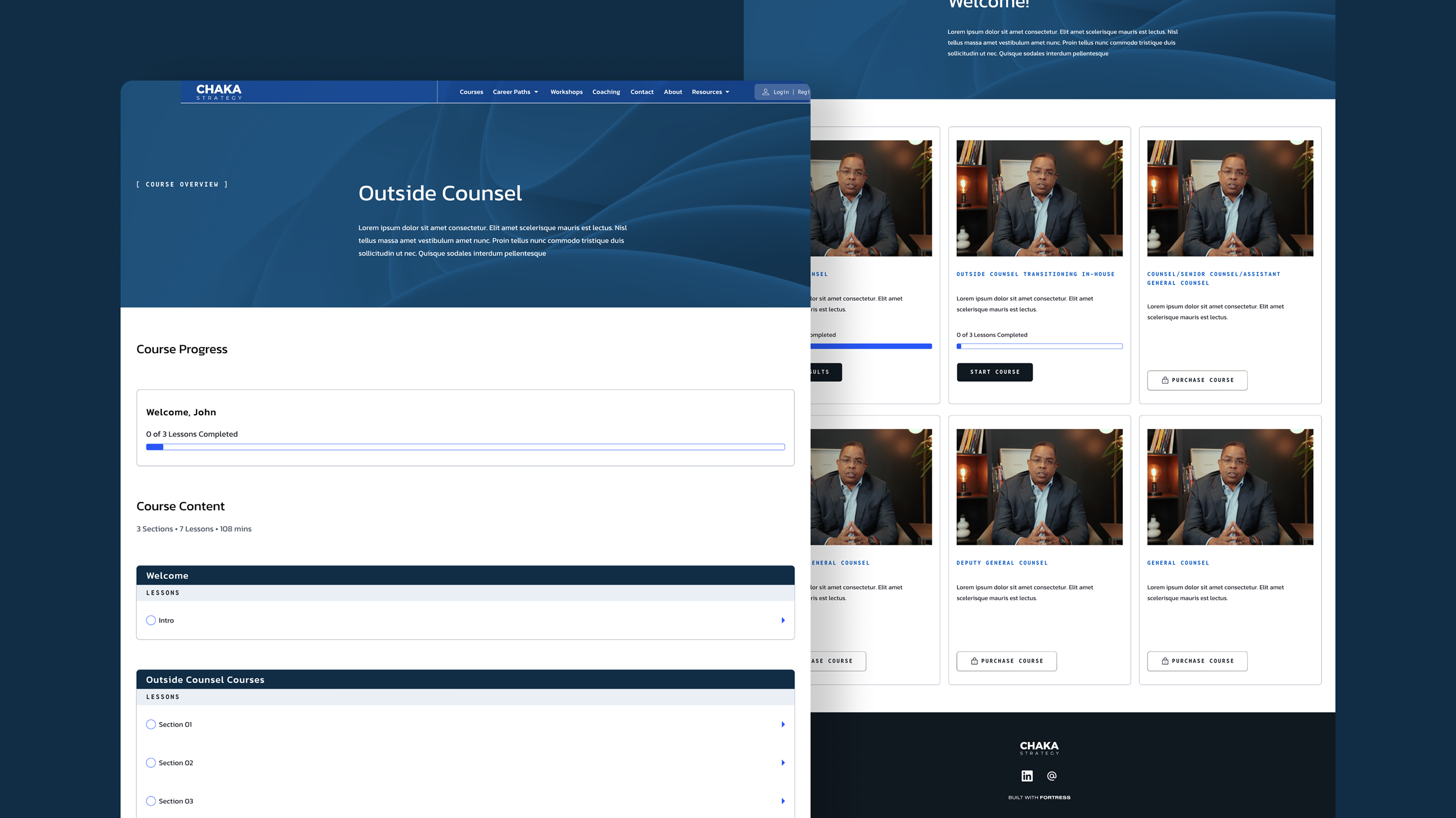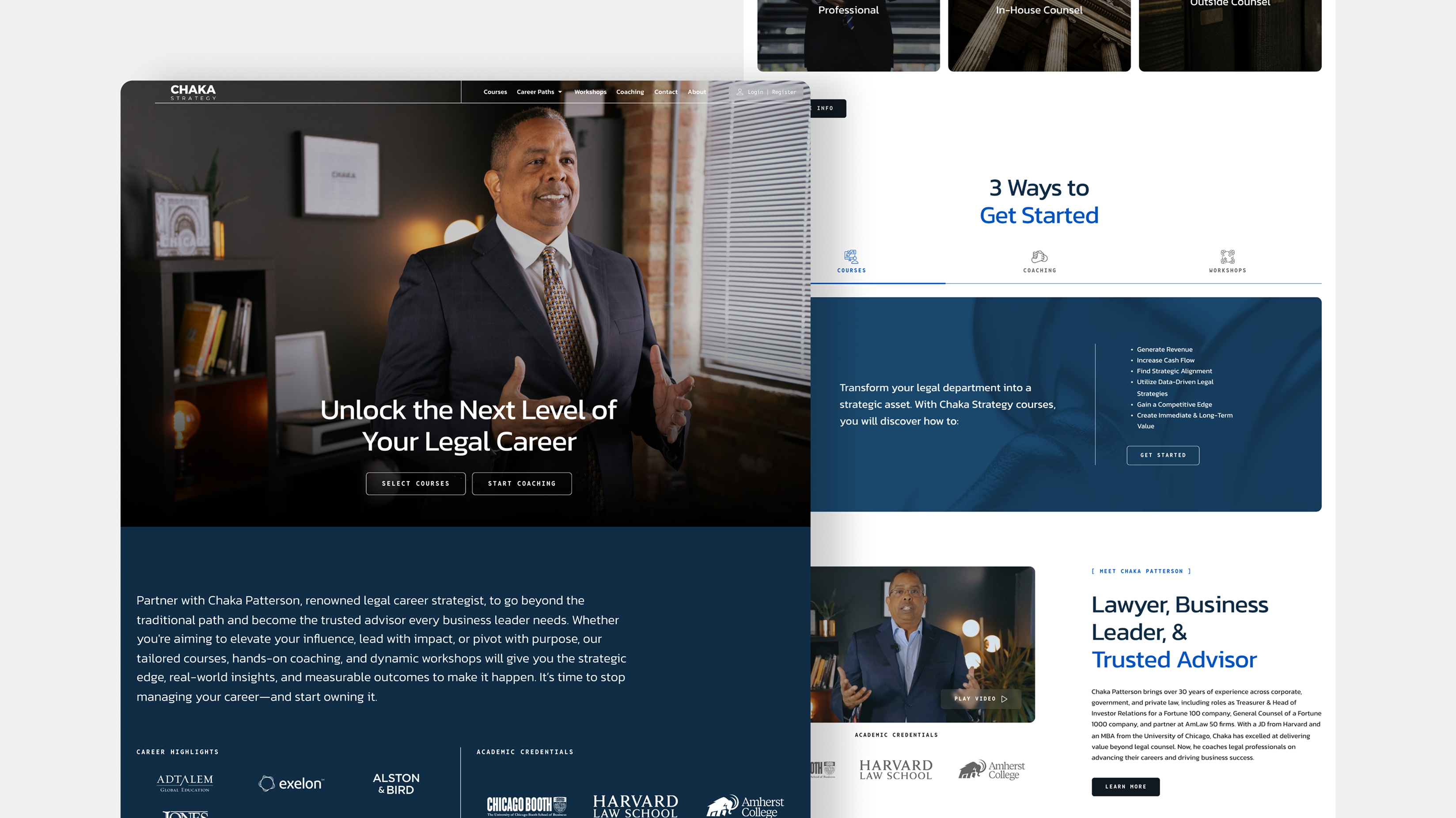 Fortress partnered with Chaka Strategy to build the brand from the ground up—developing a distinctive visual identity, producing a full suite of course and marketing videos in-house, and launching a stunning website that communicates authority and converts interest into action. Our goal was to translate Chaka Patterson’s incredible background and C-suite experience into a cohesive, modern brand ecosystem that legal leaders immediately trust.