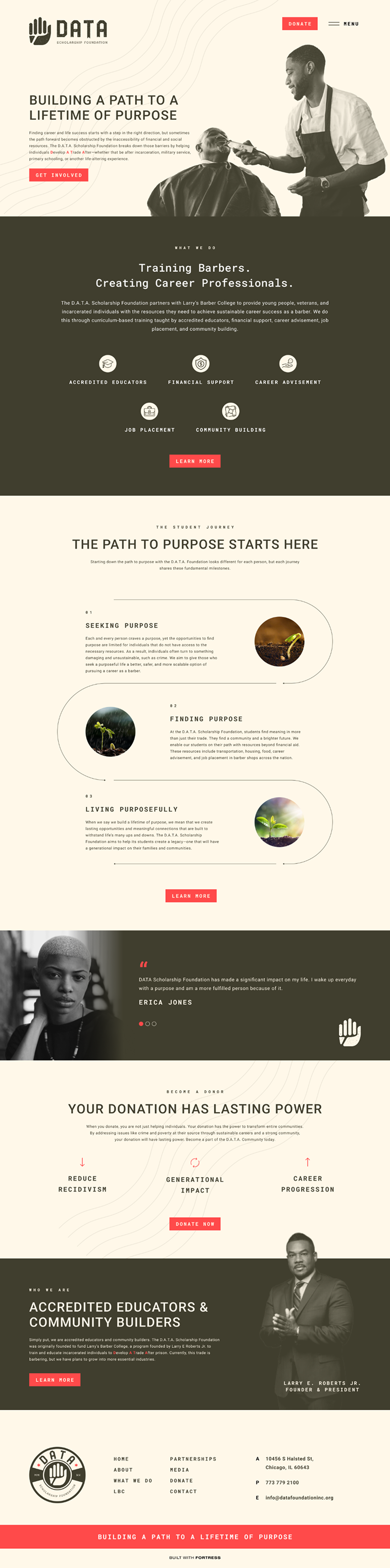 DATA stands for “Develop a Trade After..” Whether it’s military service, incarceration, primary schooling, or any other life event, the team of leaders at DATA Scholarship Foundation are committed to finding pathways to purpose for individuals across Chicago. By harnessing their brand identity and creating a website to match it, Fortress is helping connect more people to this cause.