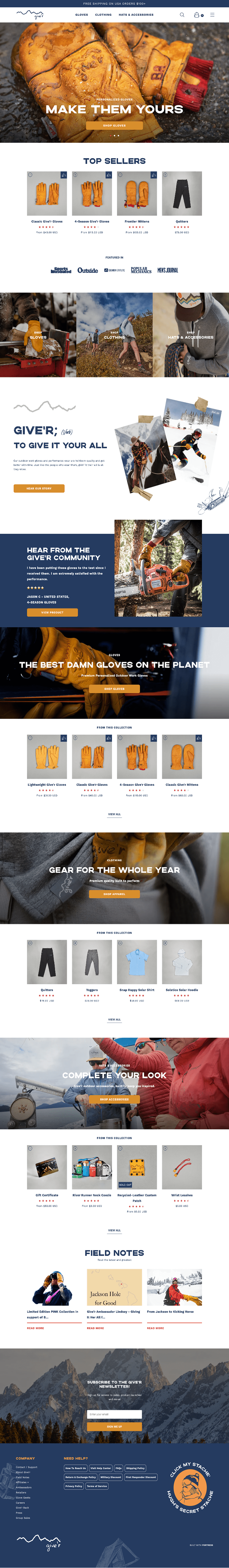 The new Give’r website is a love letter to the Give’r community; giving them a more efficient, seamless experience when ordering products. It features a new glove personalization flow, improved imagery, more user-friendly search functionality within the site, and much faster loading times across the board. Additionally, there are new pages, such as the “Glove Geeks” page and a new custom group ordering page flow that broadens the site’s written content and communication capabilities.