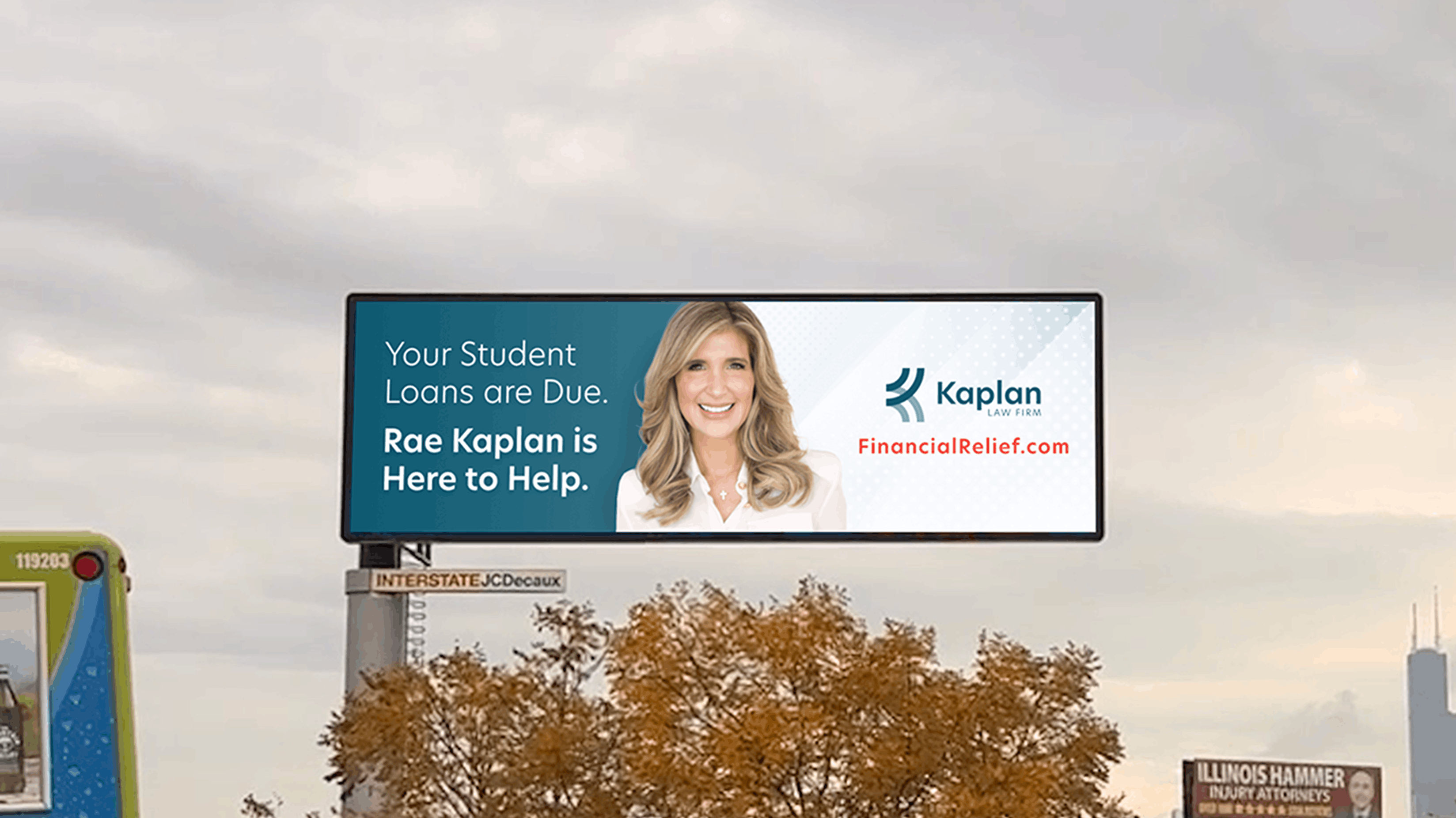 The design philosophy for Kaplan Law Firm – both on the website and on outdoor advertising such as billboards – involved conducting in-depth research into the target audience's preferences, ensuring the new creative would resonate with potential clients. The new website featured a clean and intuitive layout, improved navigation, and strategic placement of key information, resulting in a more engaging and user-friendly experience. The billboards featured sleek, minimalist design that put Rae at the center of attention, adding to the personal touch that each client receives
