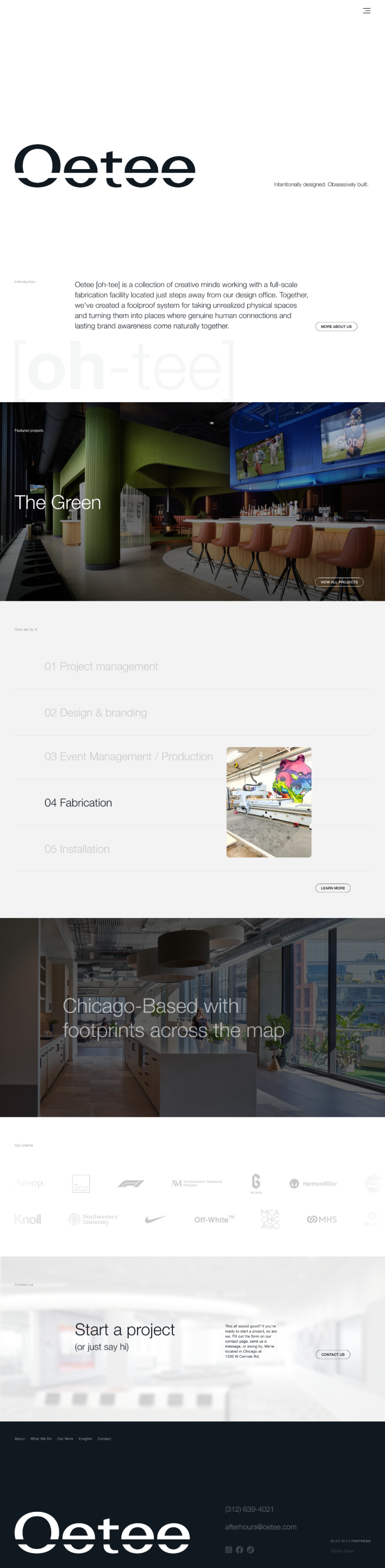 The primary goal was to create a visually compelling and user-friendly website that reflects Oetee’s unique approach to interior design and fabrication. Fortress, a marketing agency in Chicago, aimed to showcase their portfolio, highlight their services, and provide a seamless user experience.