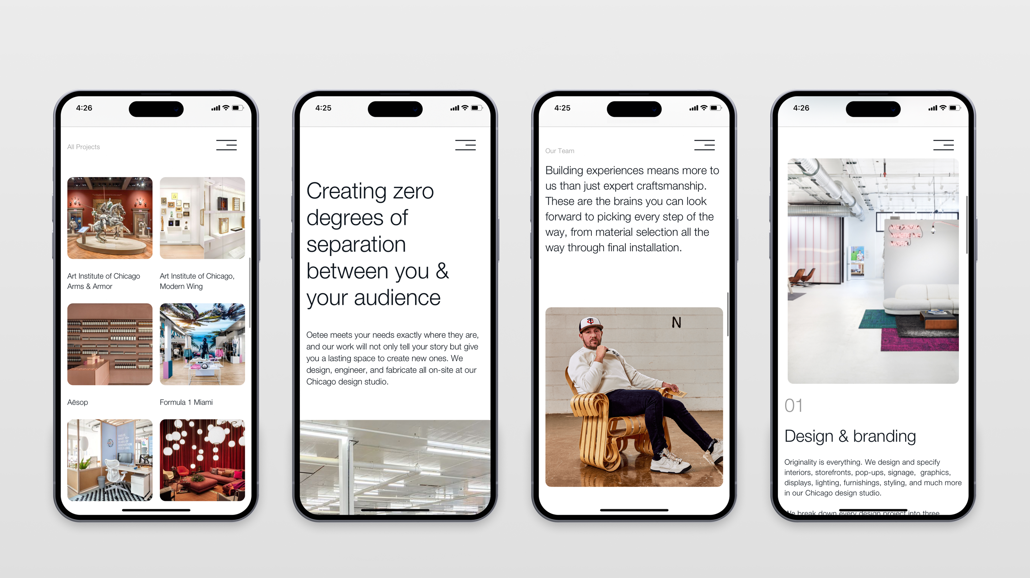 Since Oetee is a team of visual designers, their website must live up to that spirit and be inviting and communal, just like the physical spaces they build. Our web design team went to work on a mobile-first strategy that organizes the most important pieces of information thoughtfully and leaves no questions unanswered.