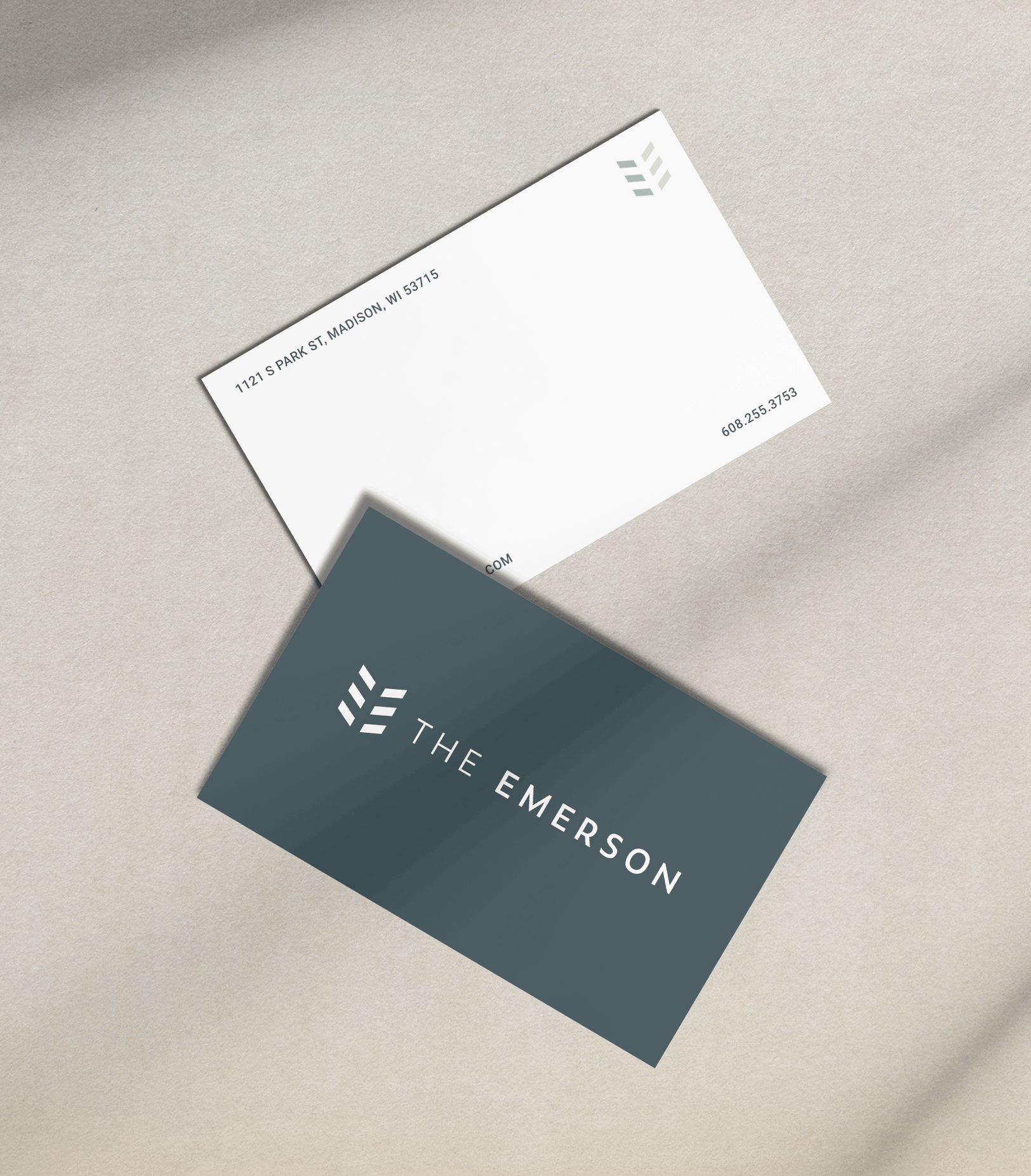 Our branding process for the Emerson was thorough – starting with coming up with the name ‘Emerson’ itself before transitioning into logo design and color and font selection. After exploring many potential names and many potential logos, we chose the combination that best communicates the mission of the Emerson to be sustainability-centered and offer stress-free living for its residents.