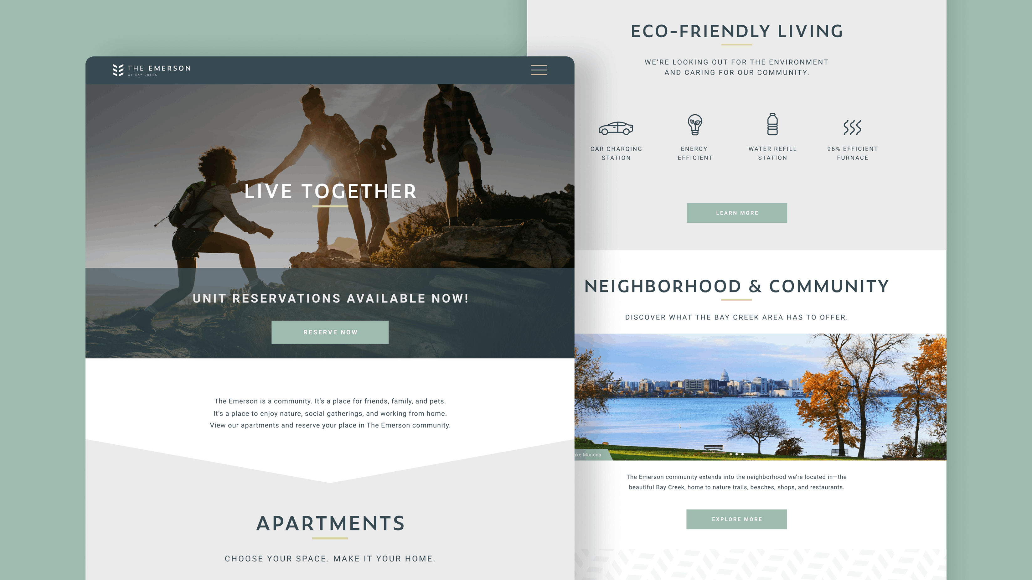 There is no shortage of apartment complexes in the downtown Madison area. We were tasked with creating an online presence that shows prospective residents that The Emerson at Bay Creek is different, and where they should choose to live their active lifestyles stress-free.