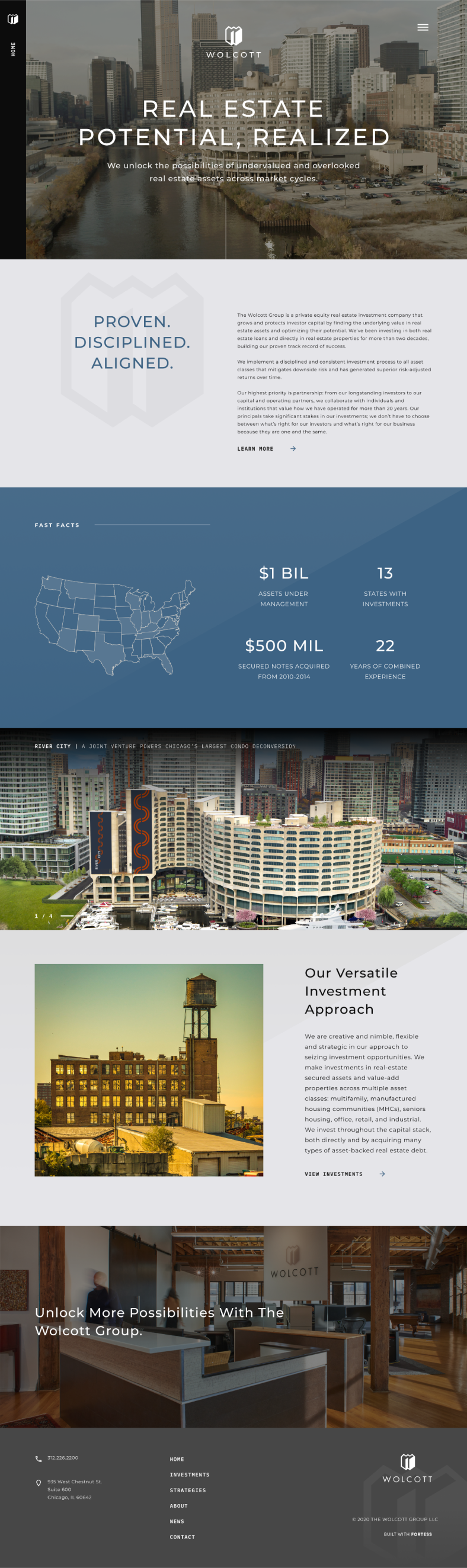 The Wolcott Group is a real estate private equity investment company that has been in business for over twenty years with a track record of optimizing the potential of real estate assets. They needed a more professional and robust online identity, and that’s where Fortress was brought in to help them reach this goal via a brand new website, and a library of professionally shot and edited headshots for the whole team.